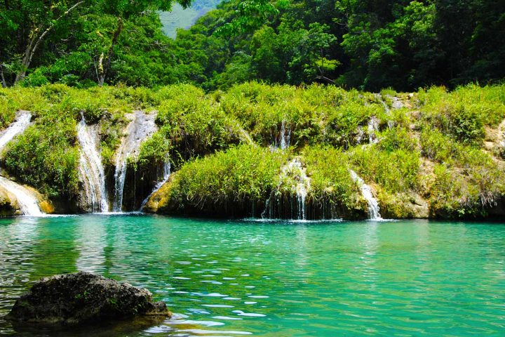 es un monumento natural y uno de los lugares más bellos de Guatemala, con el río Cahabón formando pozas que van del color jade al verde turquesa de acuerdo con la época del año y el clima.